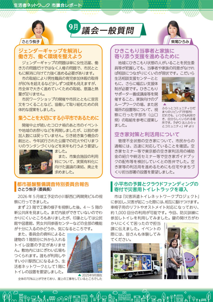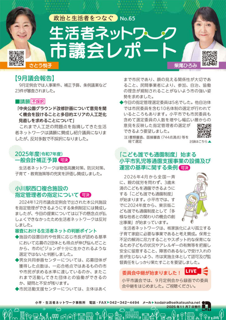 2025年11月13日 / 最終更新日 : 2025年11月13日 kodaira トピックス 生活者ネットワーク 市議会レポートNo.65 生活者ネットワーク 市議会レポートNo.65発行しました。 FacebookXBlueskyHatenaCopy