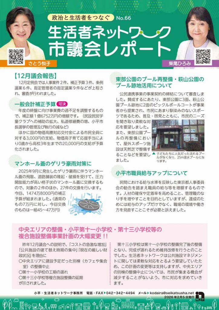 2026年2月11日 / 最終更新日 : 2026年2月11日 kodaira トピックス 生活者ネットワーク市議会レポートNo.66発行 生活者ネットワーク市議会レポートNo.66発行しました。 FacebookXBlueskyHatenaCopy